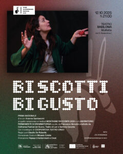 progetto selezionato al festival MONTAGNE RACCONTA 2024 e al LABORATORIO PERMANENTE DI DRAMMATURGIA curato da Francesco Niccolini e istituito da Collinarea Festival del Suono, Teatro di Lari e Sartoria Caronte Biscotti Bigusto è il racconto tragico più o meno consapevole della misura colma del dolore sopportabile nella vita di una persona, giudicata, dalla comunità a cui appartiene, inadeguata, socialmente improduttiva. Quindi strana.