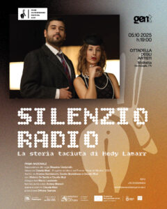 Silenzio Radio affronta la disparità di genere e riflette sull’assurdità di alcuni stereotipi. La protagonista è Hedy Lamarr, star di Hollywood che durante la II Guerra Mondiale, insieme al compositore George Antheil, mise a punto un sistema per contrastare i tentativi del nemico di intercettare i siluri alleati: il “Secret communication system”, divenuto poi la base tecnologica per lo sviluppo dei sistemi wireless. In un susseguirsi di scene e monologhi, la protagonista rivive episodi significativi della propria vita, relazionandosi con le figure maschili che in essa hanno avuto un ruolo determinante.