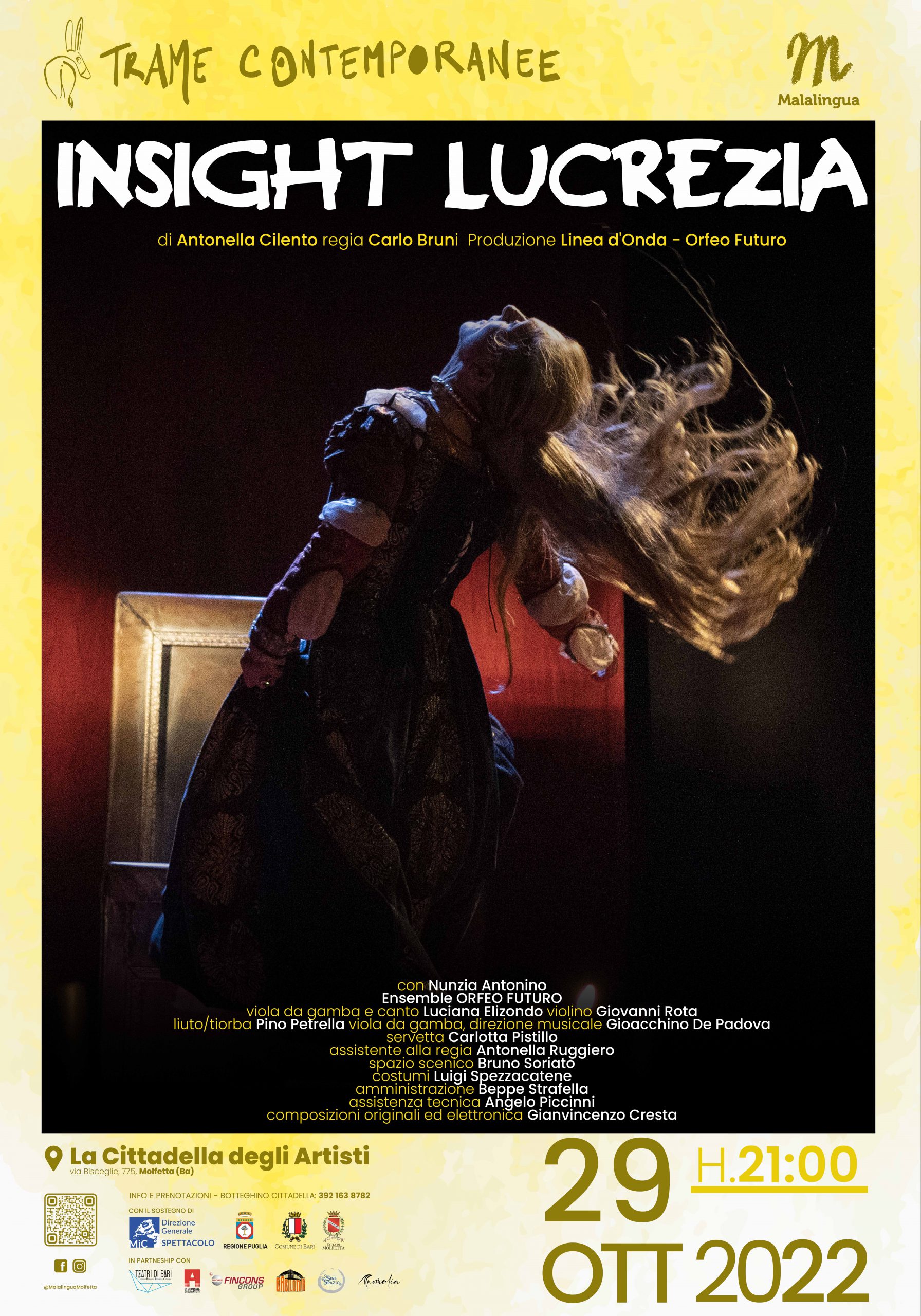 H.21:00 INSIGHT LUCREZIA di Antonella Cilento regia Carlo Bruni – Produzione Linea d’Onda – Orfeo Futuro