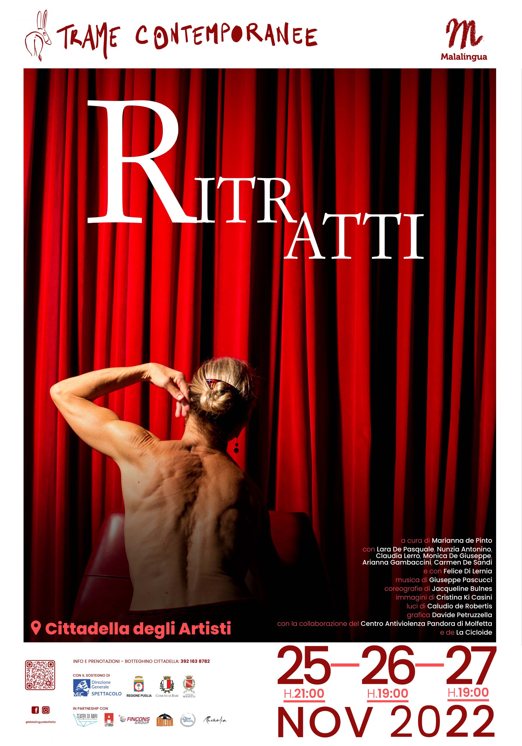 a partire dalle ore 19:00 RITRATTI regia e drammaturgia di Marianna de Pinto coreografie Jacqueline Bulnes – Produzione Malalingua ETS