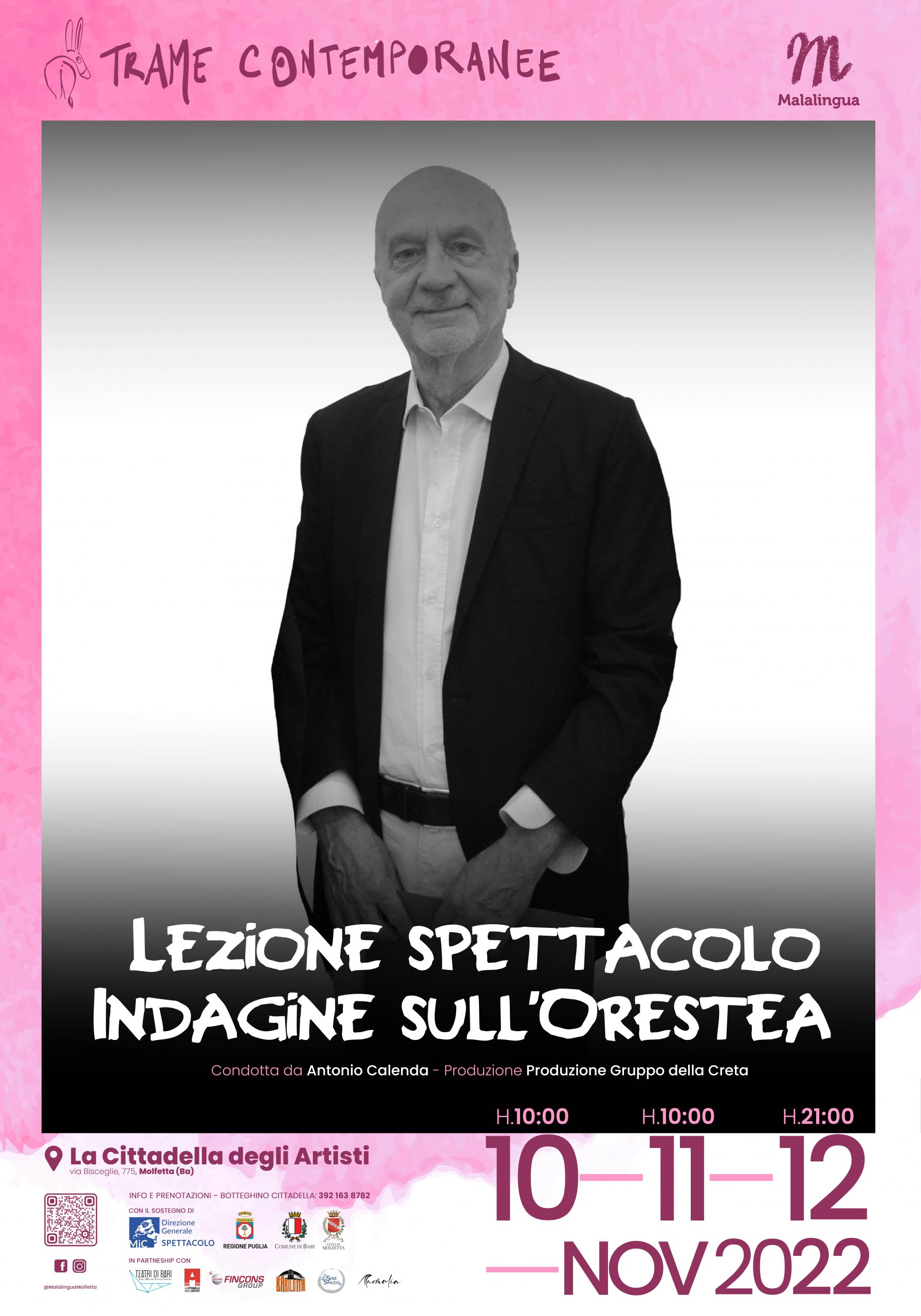 H.10:00 Lezione spettacolo – Indagine sull’Orestea condotta da Antonio Calenda – Produzione Gruppo della Creta